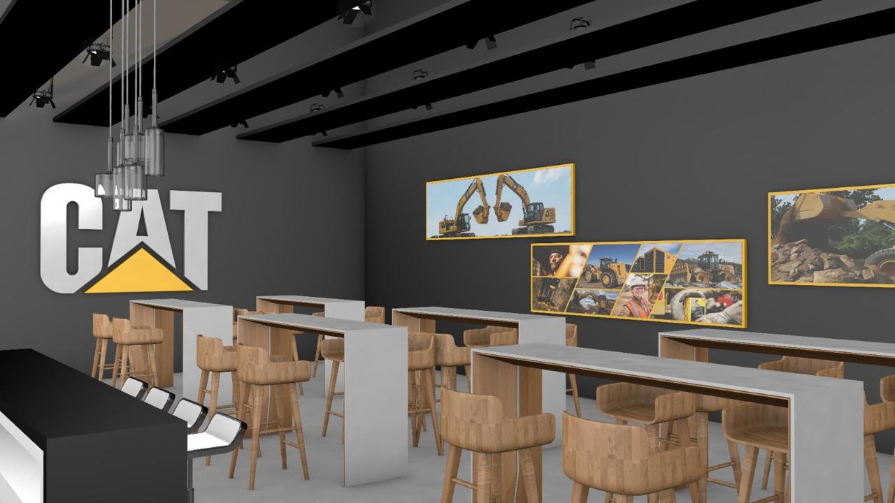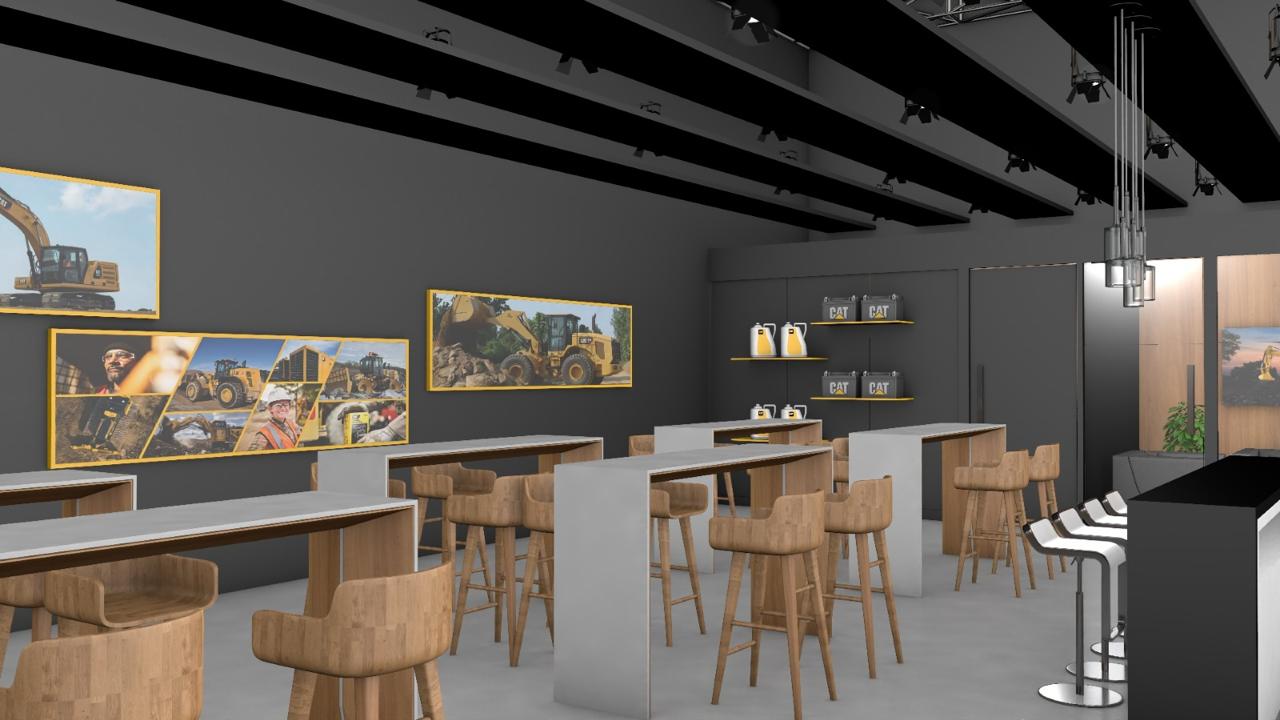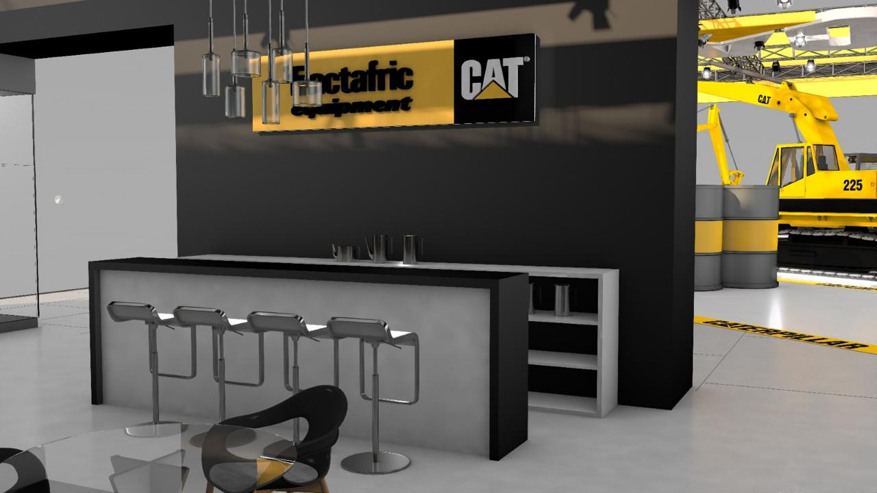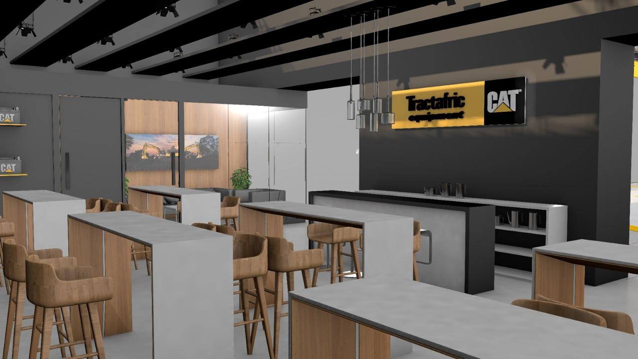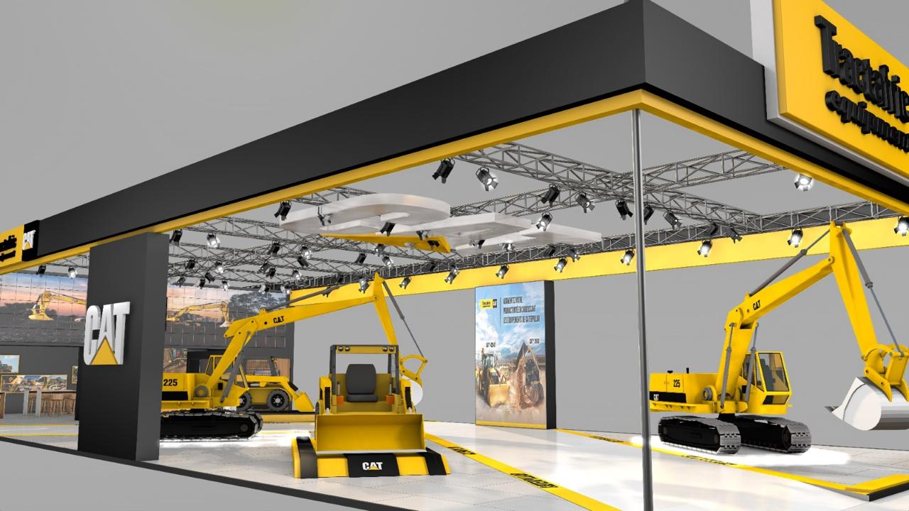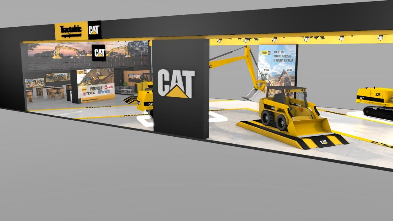 Create a 3D exhibition stand for GAT Tractafric Équipement at the BTP Expo & Forum du BTP, focusing on showcasing their machines and optimizing the use of a large space for maximum visibility.